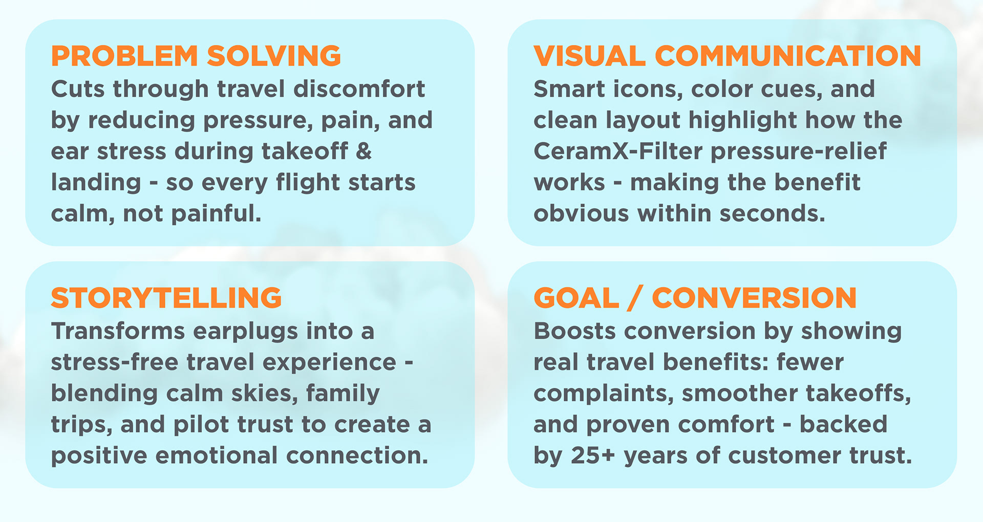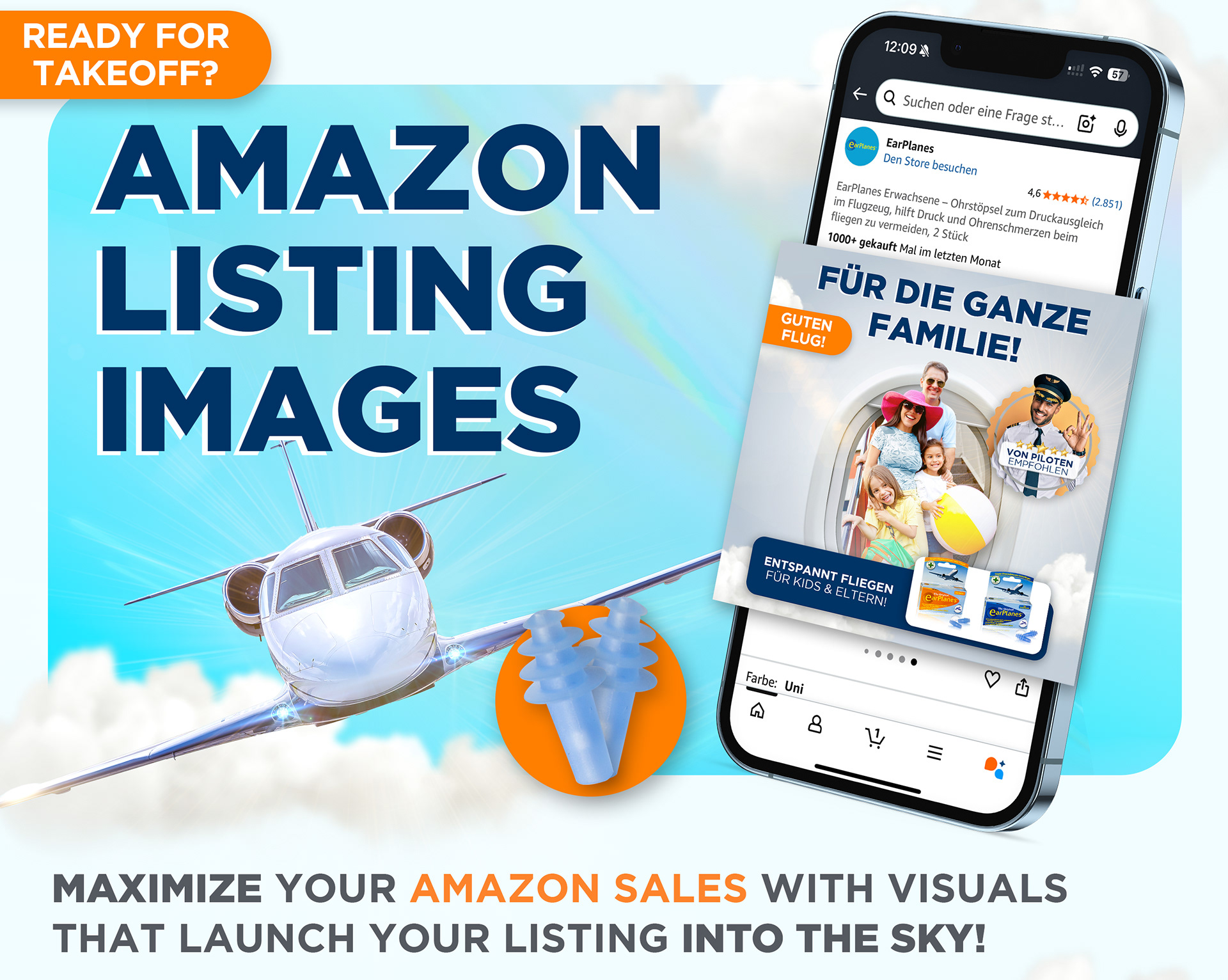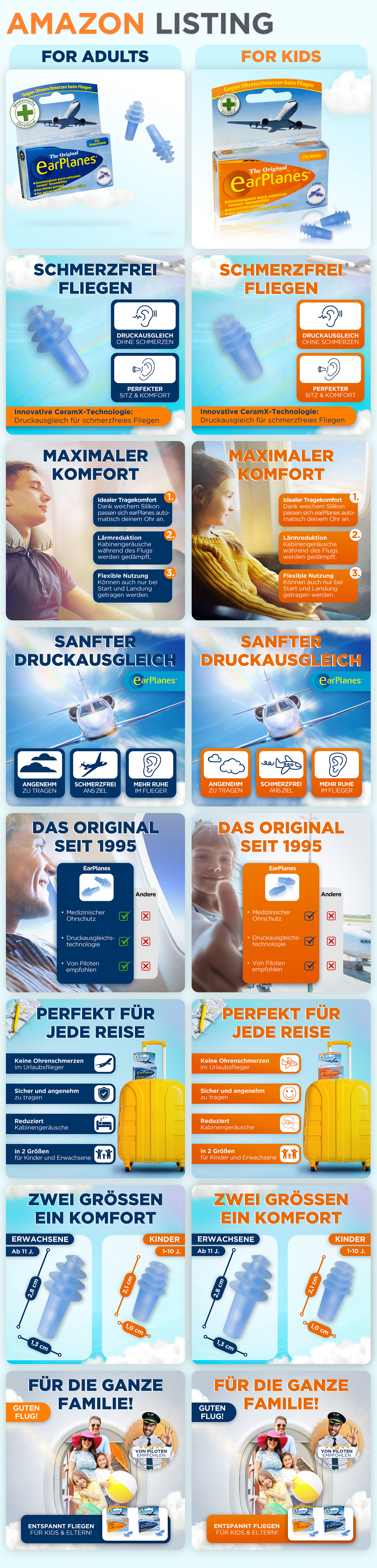 This project showcases a fully optimized Amazon Listing Image set created for the EarPlanes pressure-relief earplugs. The goal: boost conversion, improve mobile clarity, and build a strong visual identity across the product detail page. I focused on: • Conversion-driven design – clear benefits, clean hierarchy, fast message delivery • Mobile-ready layouts – optimized for how customers actually shop • Consistent branding & storytelling – sky theme, travel comfort, trusted since 1995 • High-quality product visuals – retouching, 3D-like rendering and clear iconography This listing was designed to increase CTR, highlight key product benefits, and create a calm, trustworthy travel experience for both adults and kids.